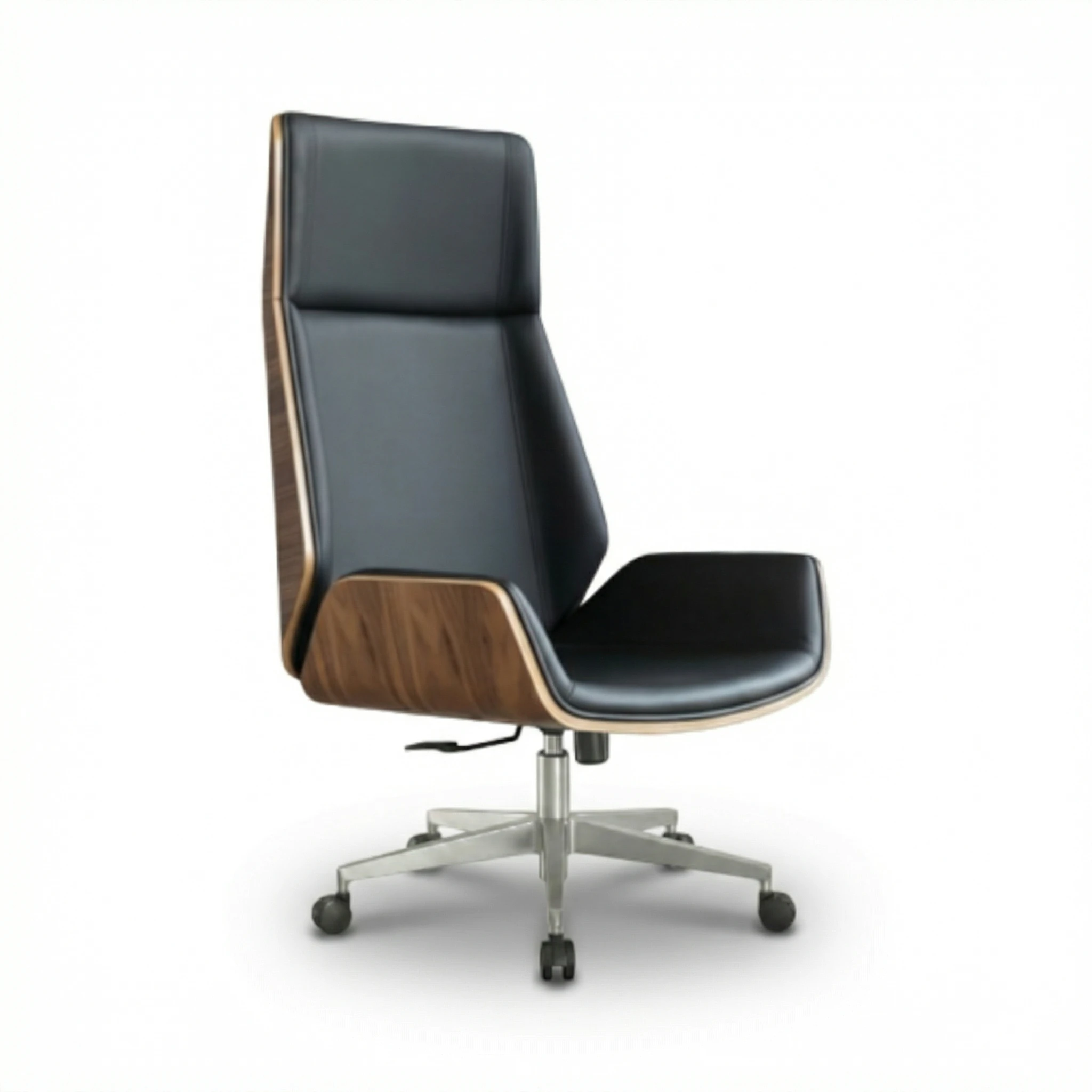 Zieno FLAT Yönetici Koltuğu, İskandinav tasarım felsefesinin zarafetini üst düzey ofis mobilyasının işlevselliğiyle harmanlayan bir başyapıt. Koltuğun en dikkat çekici özelliği, deri kaplı oturum ve arkalığı çevreleyen anatomik formlu ahşap kontrplak kabuk tasarımıdır. Bu kabuk yapısı yalnızca estetik bir unsur değil, aynı zamanda vücudun doğal eğrilerine uyum sağlayan yapısal bir destektir. Doğal ahşap tonlarıyla siyah deri arasındaki kontrast, odaya hem sıcaklık hem modernlik katar ve geleneksel yönetici koltukları arasında seni farklılaştırır. Tasarım prensibi olarak minimalizm ve zarafet ön planda tutulmuş; gereksiz süsleme ve abartılı detaylardan arındırılmış temiz bir form ortaya çıkarılmıştır.