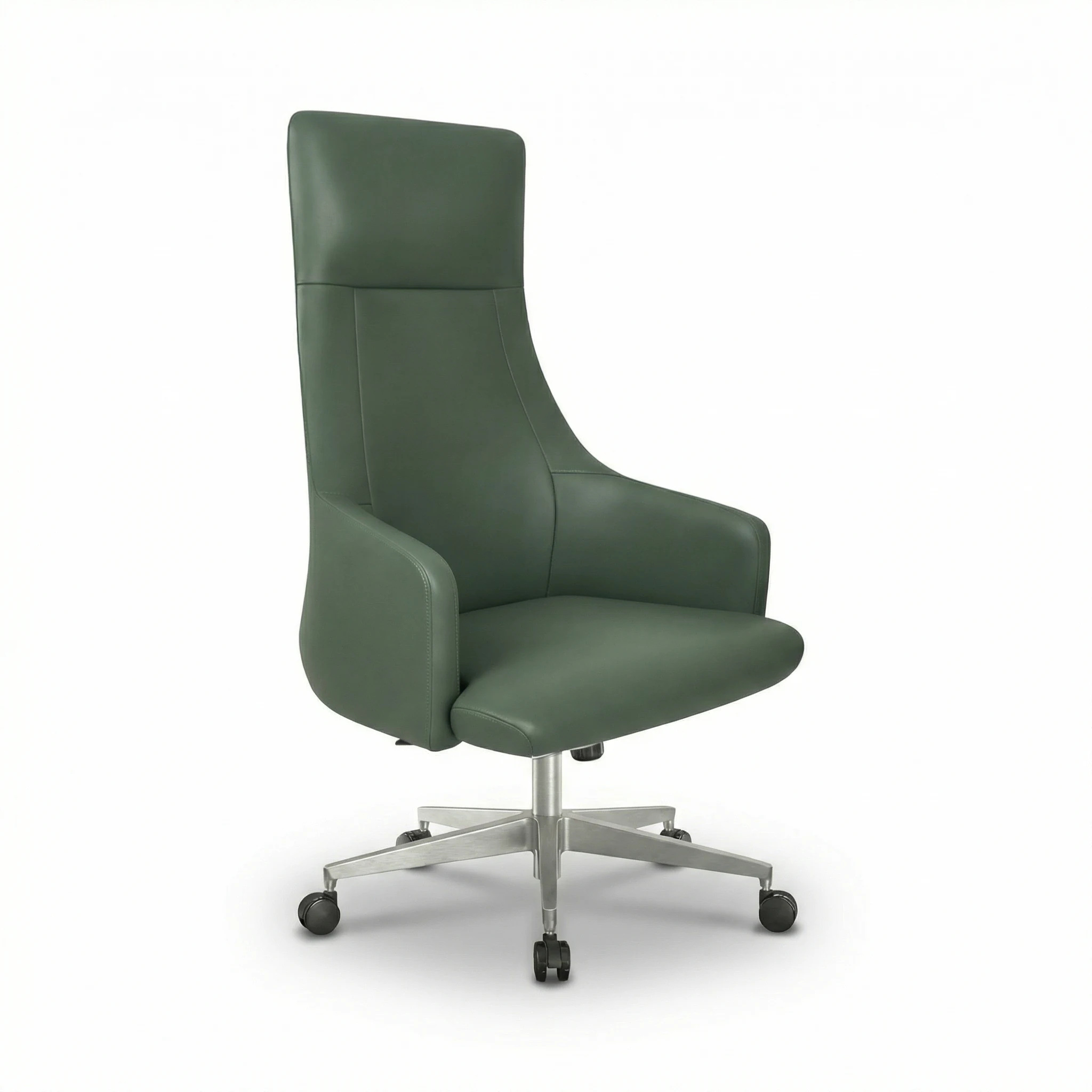 Zieno PEARL Yönetici Koltuğu, modern ofislerin vazgeçilmezi olmaya aday bir parça. Yüksek sırt yapısıyla dikkat çeken bu koltuk, estetik ve işlevselliği bir arada sunar. Yeşil deri kaplaması, zarif bir görünüm sağlarken, kullanıcısına da yüksek konfor vaat ediyor. Kol dayanağı, oturum alanının genişliği ile birleşerek, hem estetik hem de ergonomik bir denge yaratıyor.